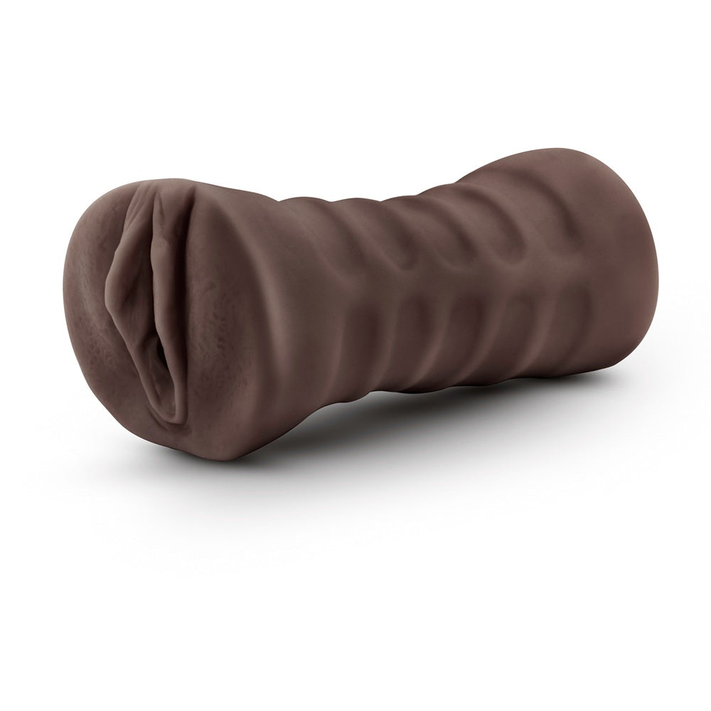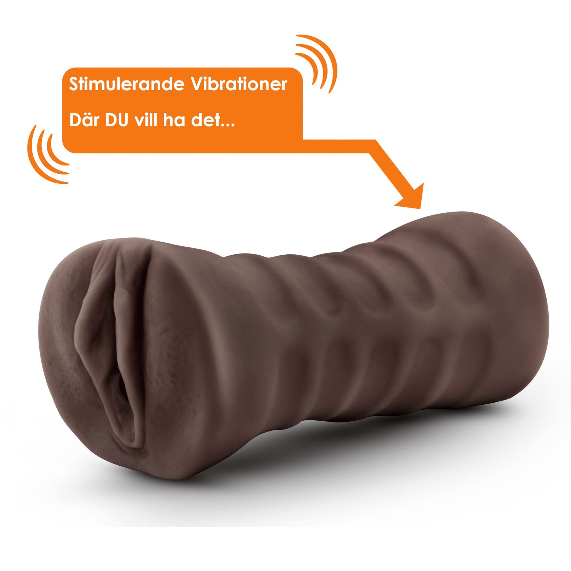 Materialet är mjukt och riktigt stretchigt. Öppningen är inbjudande i form av ett par blygdläppar. Insidan är härligt och naturtroget mönstrat, allt för att maximera mannens njutning. Läcker chokladbrun färg.