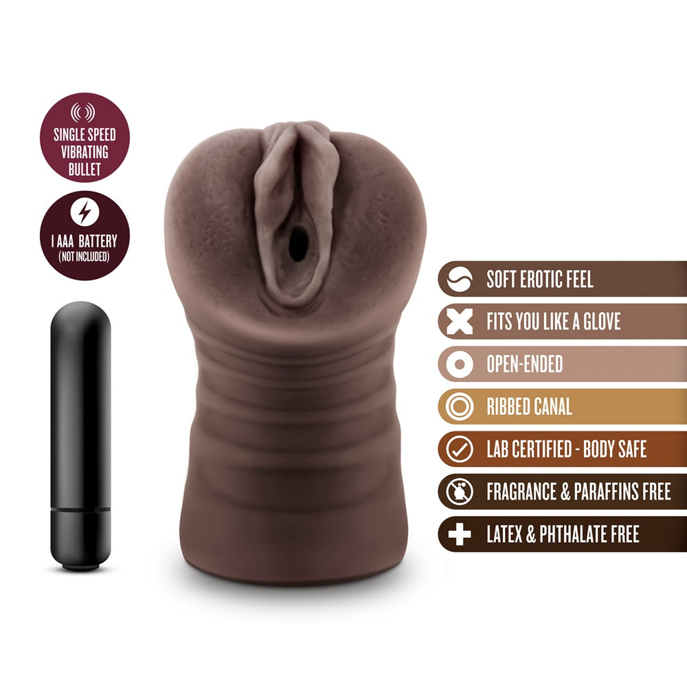 Pocket pussy i behändig storlek i naturtroget utförande. Extra plus för den vibrerande kulan som medföljer, vilken förhöjer njutningen.