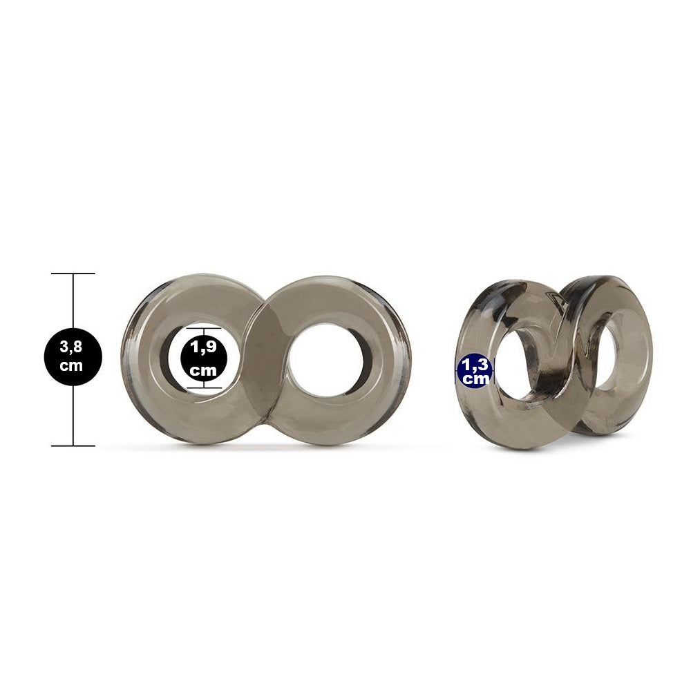 Dubbelring formad som en åtta, som gör att njutningen blir både hårdare och kan hålla på längre. Enkel att använda och sitter säkert på plats. Den ena ringen träs över penisroten och den andra runt pungen.