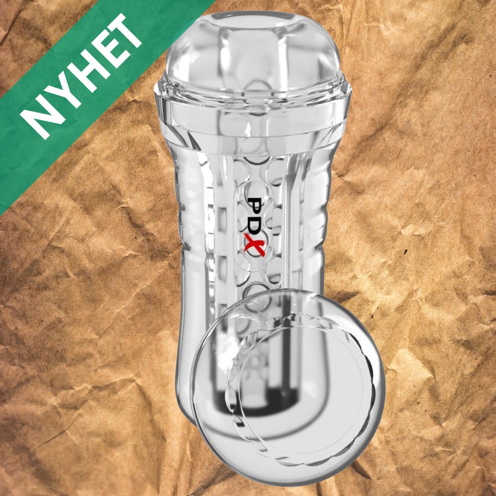 Skön njutare där du samtidigt kan se njutningen. Hylsa, fodral och lock är genomskinligt vilket skapar en till nivå av känsla. Hylsan har ett skönt stimulerande mönster på insidan.
